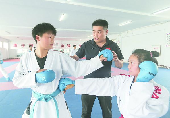 “嘿!哈!”6月26日,市體校空手道隊隊員們訓練的聲響徹整個訓練場,在劉飛的帶領下,他們揮汗如雨、拳腿生風。