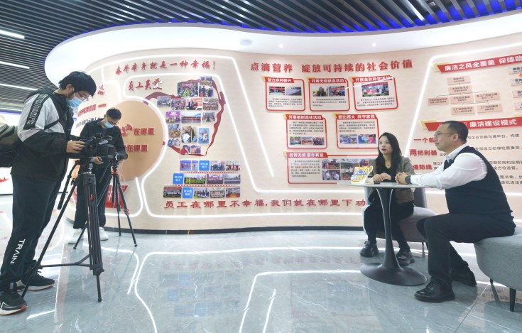 記者在“學習二十大 奮進新征程”系列微訪談欄目錄制現(xiàn)場。