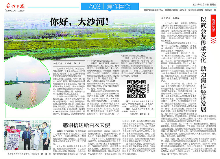 2023年是全面貫徹落實黨的二十大精神的開局之年,為了進一步促進新媒體與傳統(tǒng)媒體深度融合,把更精彩、更豐富、更貼近民生的報道呈現(xiàn)給讀者,在本報《焦作網(wǎng)談》欄目采編人員的精心策劃下,全年共刊發(fā)《焦作網(wǎng)談》41期。每期網(wǎng)談都充分發(fā)揮報紙、網(wǎng)絡、焦作+、焦作網(wǎng)微博、人民號等全媒體資源優(yōu)勢,發(fā)揮立體傳播效應,讓廣大讀者和網(wǎng)友充分領略到焦作日報社全媒體的資源優(yōu)勢和魅力,尤其是《“學習二十大 奮進新征程”系列微訪談》《焦作中醫(yī)大講堂系列微視頻》《你好,大沙河!》《市人民醫(yī)院一站式患者綜合服務中心、入院準備中心啟用》及《關注無償獻血》《網(wǎng)談聚焦》等一批新聞稿件和專欄,贏得廣大讀者和網(wǎng)友的關注和好評。