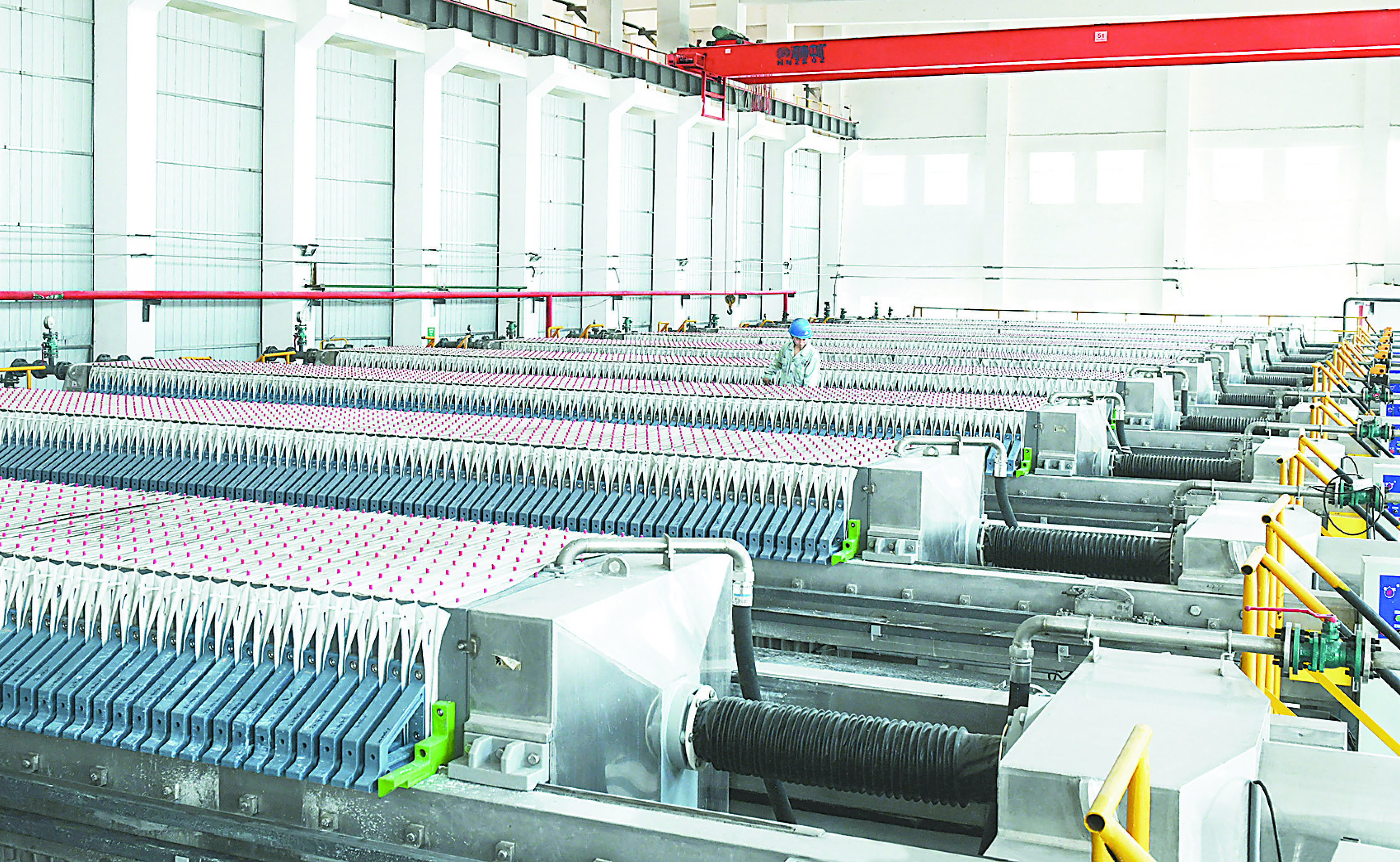 河南佰利新能源20萬噸磷酸鐵項目車間的工人在生產作業。