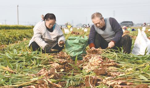 11月9日,孟州市大定街道水運村農民在田間搶收小黃姜。初冬時節,孟州市農民搶抓農時加緊收獲,到處都是豐收的喜人景象。
