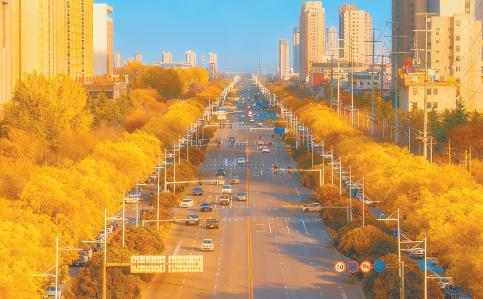11月15日,世紀路兩側的白蠟樹換上金黃“盛裝”。高大樹冠交織成蔭,金黃葉片隨風輕舞,讓這條街道變身為一道富有詩意的秋日風景線。