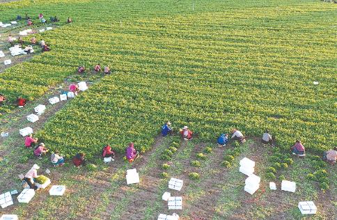11月21日,沁陽市王曲鄉(xiāng)里村的農民在田間收割香菜(無人機照片)。入冬以來,寒意漸濃,各地農民搶抓農時,進行農作物種植、田間管護和采收等農事活動,田間地頭一派繁忙景象。