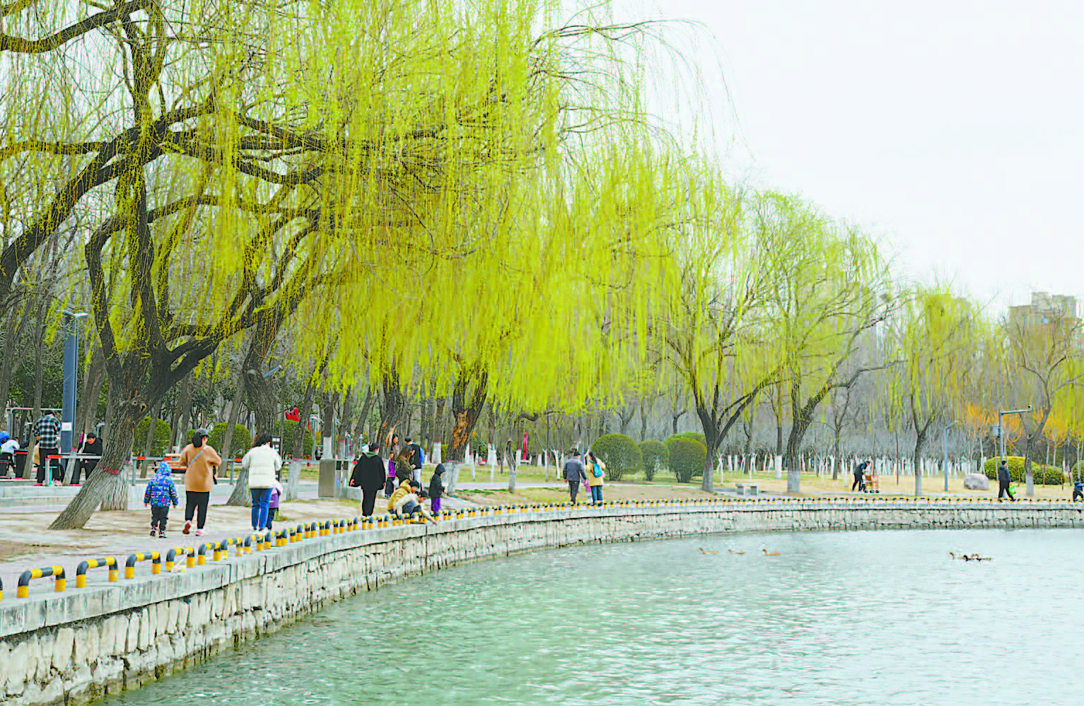 圖② 昨日,龍源湖岸邊垂柳枝條搖曳多姿景色如畫。