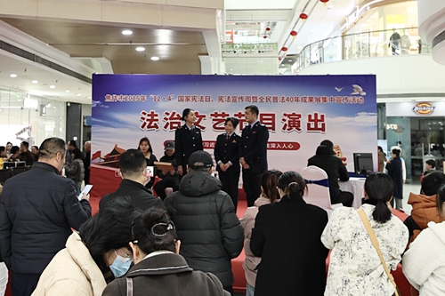 “焦作市2025年12・4 國家憲法日、憲法宣傳周暨全民普法40年成果展”集中宣傳活動現場,市民在觀看法治文藝節目演出。