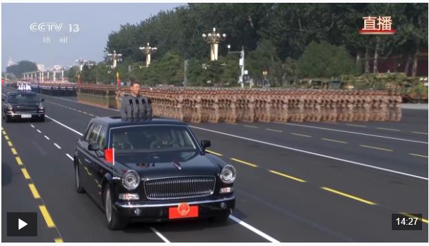 在雄壯的軍樂聲中,習近平乘車沿著寬闊的長安街,依次檢閱徒步方隊和裝備方隊。