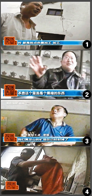 據央視每周質量報告報道,由于政府實施了“禁礦令”,宜興原礦紫砂越來越少,于是一些煉泥廠開始摻雜使假,大量使用浙江、安徽等外地礦料或者普通陶土,通過添加化工原料或陶瓷色料進行調色,加工生產所謂的原礦紫砂泥。宜興一家紫砂壺加工點的老板承認,黃龍山的礦早已封掉,他們用的泥巴有的來自浙江有的是來自安徽。