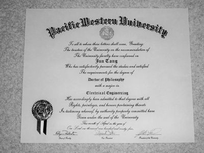 那么,唐駿的博士學(xué)位從何而來?他回應(yīng)稱,自己在日本攻讀了五年的博士,最后一刻在日本放棄了博士論文答辯去了美國(guó)。“最后就在美國(guó)一家叫Pacific Western(西太平洋大學(xué))的私立大學(xué)進(jìn)行了他們的輔導(dǎo)做了一些研究,最后拿到了Pacific Western大學(xué)的博士學(xué)位,這些都有證書在。”唐駿說。