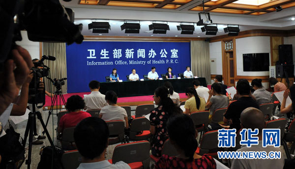 8月15日拍攝的新聞發(fā)布會(huì)現(xiàn)場(chǎng)。8月15日,衛(wèi)生部舉辦新聞發(fā)布會(huì)通報(bào)圣元奶粉檢測(cè)結(jié)果,未檢出己烯雌酚和醋酸甲孕酮等禁用的外源性性激素,內(nèi)源性雌激素和孕激素的檢出值符合國內(nèi)外文獻(xiàn)報(bào)道的含量范圍。衛(wèi)生部專家組評(píng)估認(rèn)為,湖北三例嬰幼兒單純性乳房早發(fā)育與食用圣元優(yōu)博嬰幼兒乳粉沒有關(guān)聯(lián),目前市場(chǎng)上抽檢的圣元乳粉和其他嬰幼兒乳粉激素含量沒有異常。 新華社記者 何俊昌 攝