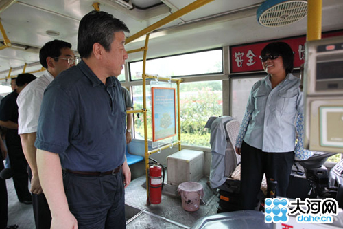 盧展工還與同乘公交的大學生、個體戶、市民、退休工人等一一交談,詳細了解他們對鄭州公交工作的意見建議。