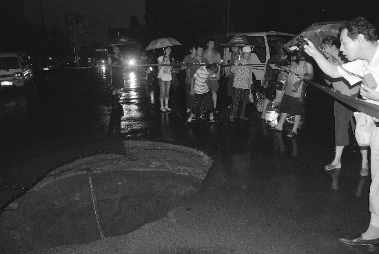 本報訊 (記者賀君) 昨日傍晚,突如其來的一場大雨給市民帶來了一絲清涼,也帶來了不少麻煩,在烈士街道清學(xué)校西側(cè),雨后的路面上突然塌陷一個大坑,幸未造成人員傷亡。相關(guān)單位接報后及時趕到現(xiàn)場,對大坑進(jìn)行了隔離處理。