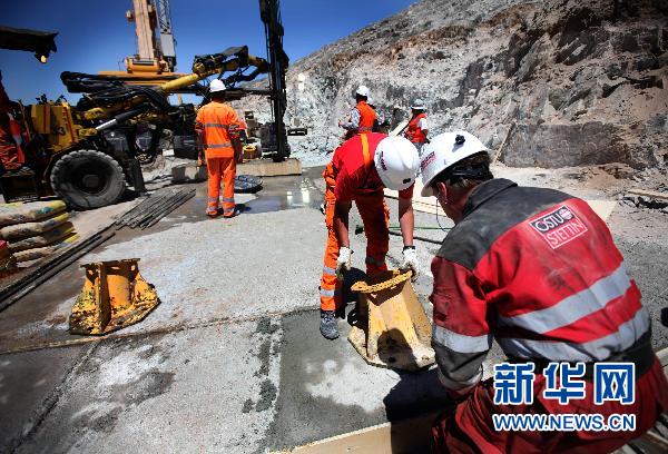 10月12日,在智利圣何塞銅礦,救援人員為救援工作進行最后的準(zhǔn)備。智利圣何塞銅礦被困礦工救援工作于當(dāng)?shù)貢r間12日下午正式開始。新華社發(fā)(智利政府提供)
