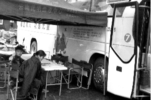 當病人和醫生都在等候的時候,血液中心的采血車,也在等候,等候義務獻血的人到來。