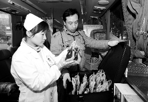 在昆明市血液中心,現在最常見到的一幕,是排隊的救護車隊。他們來自各醫院。