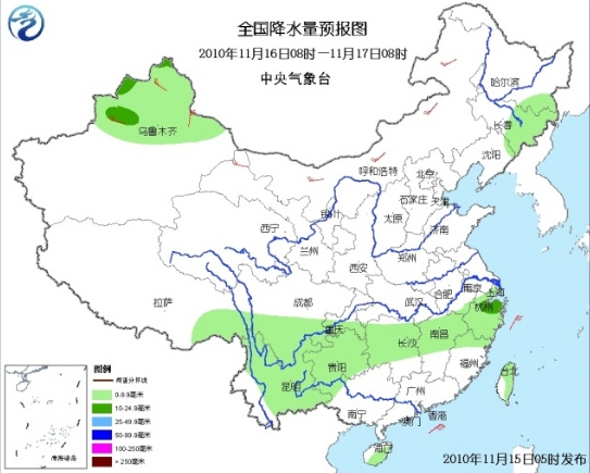 16日至17日全國(guó)降水量預(yù)報(bào)圖