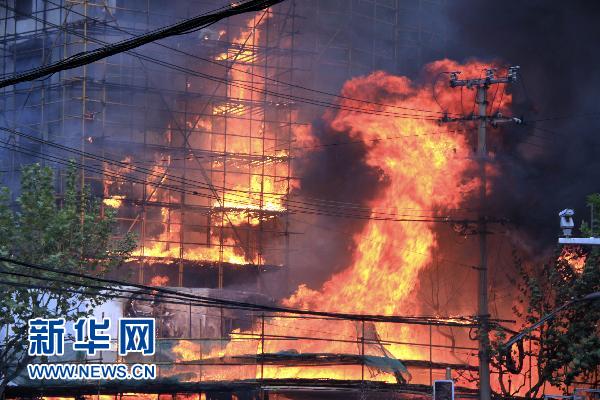 資料圖片:這是11月15日拍攝的火災現場。當日14時許,上海市中心膠州路靠近余姚路附近的一座約30層的公寓樓發生火災。新華社發
