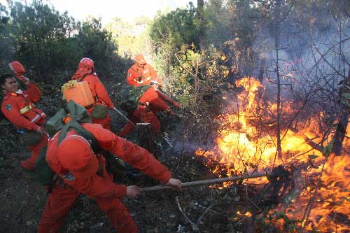 | 麗江(云南),2010年3月1日 麗江玉龍縣發生森林大火 2月28日,在云南省麗江市玉龍縣黃山鎮五臺辦事處所屬集體山林,麗江森警支隊官兵正在滅火。 當日凌晨5時左右,這處集體山林發生森林大火。目前,火勢尚未得到控制,當地已從寧蒗、永勝縣抽調森警增援,力爭3月1日天亮前控制火勢。 |