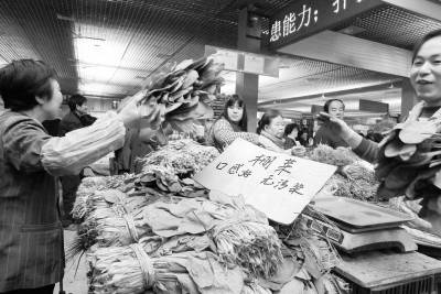 北京菜販打出菠菜“無污染”提示牌吸引顧客 袁文攝