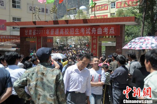 甘肅舟曲8·8特大山洪泥石流災害過去整整10個月后,6月7日至8日,赴外就讀歸來的868名舟曲學子步入考場,參加高考。馮曉宏 攝