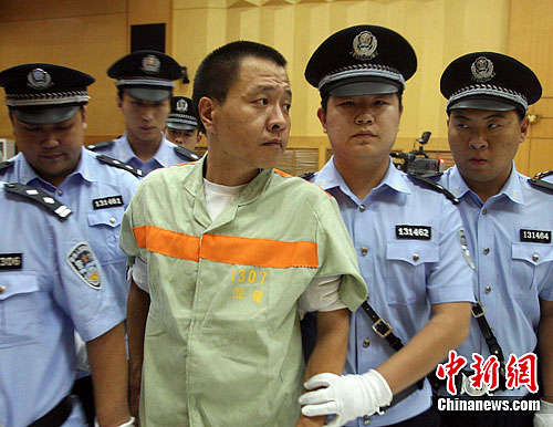 圖為王朝被押下法庭時,向旁聽席上張望尋找母親。中新社發丁立新攝