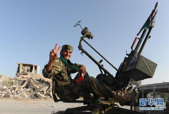 10月30日,在利比亞首都的黎波里的阿齊齊亞兵營(yíng),一名當(dāng)局武裝人員在一棟被拆除的二層小樓前留影。曾經(jīng)象征卡扎菲權(quán)力的阿齊齊亞兵營(yíng)于30日被徹底拆除。 新華社記者覃海石攝