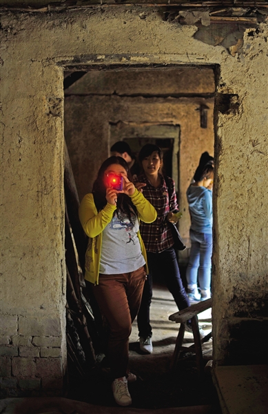 10月15日,莫言舊居內,一位參觀者對室內景象進行拍攝。