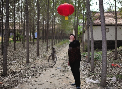 10月15日,高密市大欄鄉平安莊,村委會安排人在莫言舊居的周圍掛起了紅燈籠。
