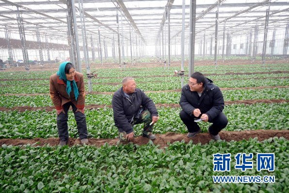 12月16日,聯合社工作人員(右一)為菠菜種植戶提供技術指導。河北省香河縣安平鎮將18個農村種養殖合作社組合成立了專業合作社聯合社,共涉及農戶近千戶,經營范圍涉及各種無公害蔬菜、果樹、食用菌、花卉、花生、薯類、牛、羊、家禽等,通過聯合社,為農民提供技術指導,聯絡客商,拓展農產品銷路。新華社記者李曉果攝
