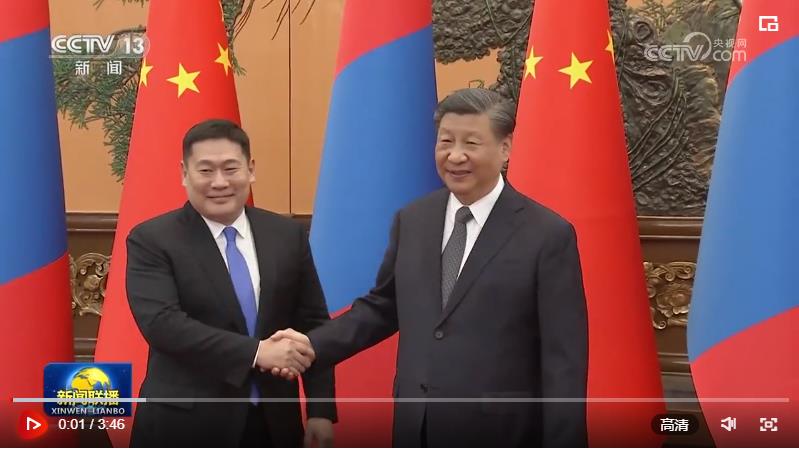 習(xí)近平指出,中蒙同為發(fā)展中國家,在國際和地區(qū)事務(wù)中擁有廣泛共同利益和相近立場主張,中方支持蒙方在地區(qū)和國際事務(wù)中發(fā)揮積極作用。希望雙方秉持人類命運共同體理念,堅定捍衛(wèi)多邊主義,共同構(gòu)建相互尊重、公平正義、合作共贏的新型國際關(guān)系。