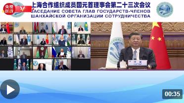 國家主席習近平7月4日下午在北京以視頻方式出席上海合作組織成員國元首理事會第二十三次會議并發表題為《牢記初心使命 堅持團結協作 實現更大發展》的重要講話。
