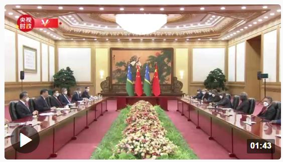 索加瓦雷說:“主席先生,我們親眼看見當今世界上的種種霸凌行徑,我欽佩您在此艱難時刻所表現出的堅定立場。您正在引領(世界發展)。所羅門群島和其他太平洋島嶼國家欽佩您的立場,這表明您將繼續在當今世界發生的種種變化中,起到極具遠見卓識的領導作用。”