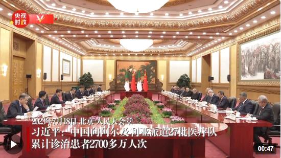 習近平指出,今年是中國向阿爾及利亞派遣醫療隊60周年,也是中國向海外派遣援外醫療隊60周年。60年來,中方向阿方派遣27批醫療隊、3522人次醫護人員,累計診治患者2700多萬人次,接生207萬多新生兒,樹立了中阿友誼的豐碑。