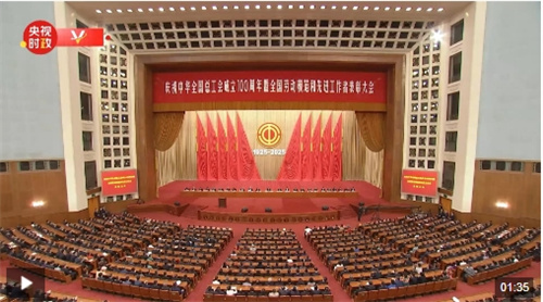 慶祝中華全國總工會成立100周年暨全國勞動模范和先進工作者表彰大會28日上午在人民大會堂隆重舉行。中共中央總書記、國家主席、中央軍委主席習近平出席大會并發表重要講話。