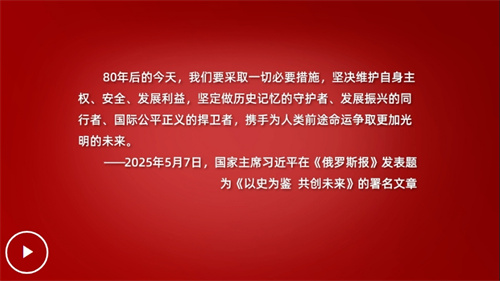 展望未來,在變亂交織的世界中,習(xí)近平強(qiáng)調(diào)“以史為鑒”,堅(jiān)定做歷史記憶的守護(hù)者、發(fā)展振興的同行者、國際公平正義的捍衛(wèi)者,攜手為人類前途命運(yùn)爭取更加光明的未來。