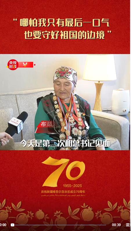 “人民楷模”國家榮譽稱號獲得者布茹瑪汗·毛勒朵表達了她最想對總書記說的話:“我從19歲開始守邊護邊,哪怕我只有最后一口氣,也要守好祖國的邊境。”