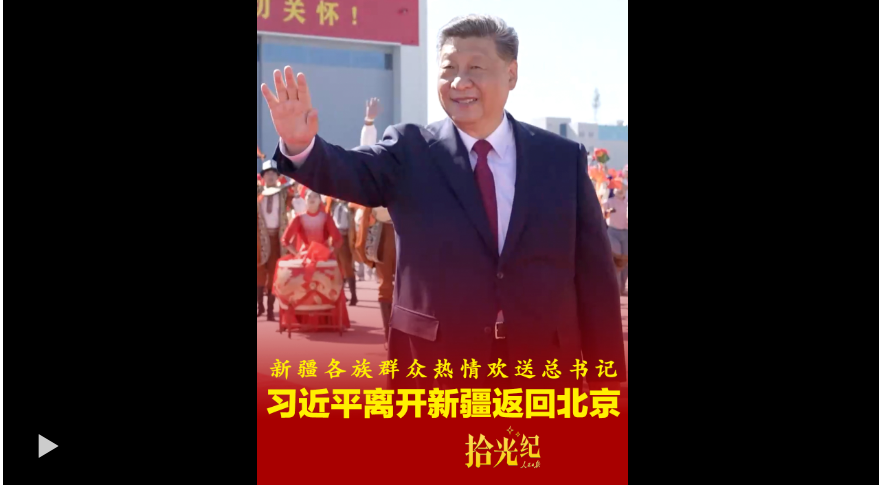 25日,習近平乘專機返回北京。烏魯木齊天山機場奏響別具特色的樂曲《我們在一起》,各族群眾載歌載舞熱情歡送總書記。