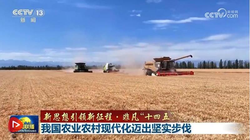 央視網消息(新聞聯播):習近平總書記指出,沒有農業農村現代化,就沒有整個國家現代化!笆奈濉边@五年,我國堅持農業農村優先發展,深入實施鄉村振興戰略,推動農業農村發展取得新的歷史性成就,為農業大國向農業強國跨越奠定了堅實基礎。