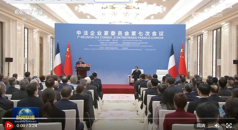 12月4日中午,國家主席習近平在北京同法國總統馬克龍共同出席中法企業家委員會第七次會議閉幕式并致辭。