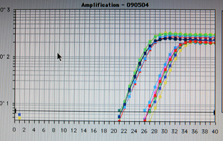 記者在實驗室電腦前拍下了甲型H1N1基因PCR擴增曲線圖。(見圖)