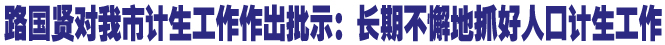 長(zhǎng)期不懈地抓好人口計(jì)生工作