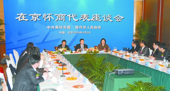 春意萌動之際,兩會即將開幕之時。昨日下午,市委、市政府在北京召開了在京懷商代表座談會,意在為我市在京懷商搭建平臺,共敘友誼,共謀發展,并傳承懷商精神,弘揚懷商文化,推動焦作經濟快速發展。