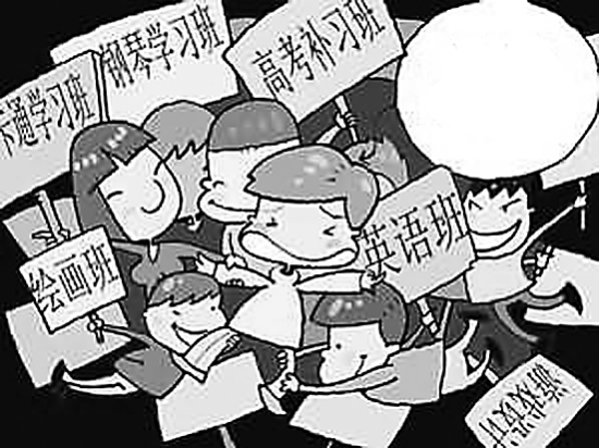 當前的培訓班五花八門、名目繁多,除了語數外同步提高班,還有大量培養孩子特長的音樂、美術、書法、棋類以及體育等各種培訓班。每到寒暑假和周末,形形色色的培訓班紛紛走上街頭,進行招生宣傳。班級從小學到初中再到高中不一而足,其收費也從幾百元至數千元不等。