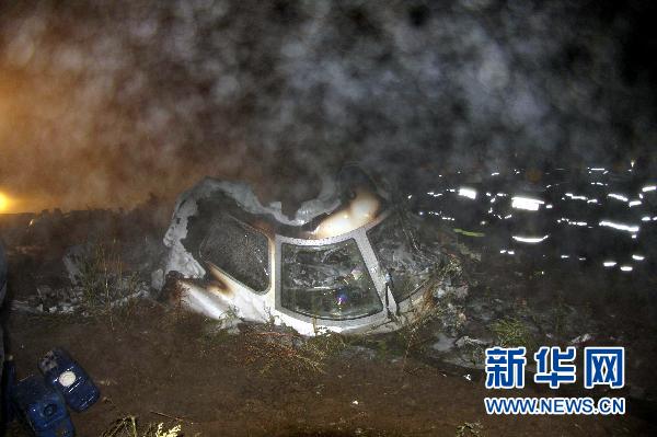 這是8月25日凌晨拍攝的失事飛機殘骸。新華社發(李廣福 攝)