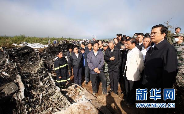 8月25日,中共中央政治局委員、國務院副總理張德江在事故現場。8月24日晚,河南航空有限公司(原鯤鵬航空公司)一架客機在黑龍江省伊春市降落時發生事故。事故發生后,中共中央政治局委員、國務院副總理張德江立即率交通運輸部、公安部、衛生部、安全監管總局等有關部門負責同志連夜趕赴事故現場,指導搶救、善后處理和事故調查工作。新華社記者 姚大偉 攝
