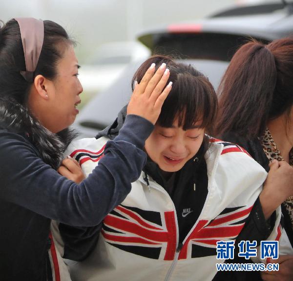 8月25日,一位在伊春空難中失去親人的家屬(中)在機場門前悲痛不已。新華社記者 李勇攝