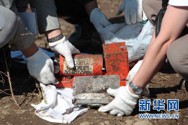 8月25日,在飛機失事現場,客機“黑匣子”被找到。8月24日21時36分左右,一架編號為VD8387的河南航空公司飛機在接近伊春機場跑道時失事。機上共有旅客91人(其中兒童5人),機組5人。新華社記者 邢廣利 攝