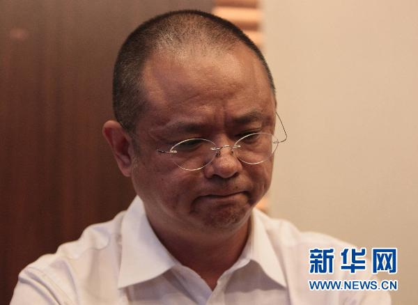 8月26日,河南航空公司監事會主席劉航在新聞通氣會上擦眼淚。當日,伊春飛機失事首次新聞通氣會在黑龍江省伊春市召開。相關部門人員介紹了事故情況、救援進展和善后處理等情況,但沒有回答記者提問。新華社記者 邢廣利 攝