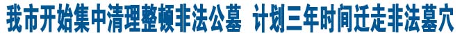 本報訊 (記者梁智玲) 記者從昨日召開的全市清理整頓非法公墓工作會議上得知,我市將開始集中整頓非法公墓,計劃用3年時間分期分批把非法墓穴遷移出去。