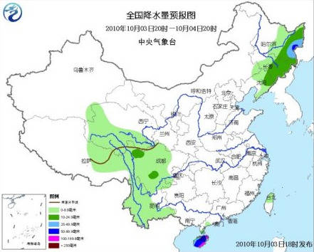 3日20時至4日20時,青海西部和南部、西藏東部有小到中雨(雪)或雨夾雪;東北中東部、四川中西部、云南大部、廣東西南部沿海、臺灣北部、海南等地有小到中雨或陣雨,其中,海南有大到暴雨,局地大暴雨,黑龍江東南部有大雨、局地暴雨;上述地區局部伴有短時雷雨大風或冰雹等強對流天氣。內蒙古東南部、東北大部、華北東部、黃淮東部等地有4~6級風。渤海、黃海中北部有7~8級、陣風9~10級的西北風;黃海南部有6~7級、陣風8級的西北風;南海西北部、北部灣有6~8級、陣風9級的東北風。