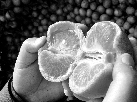 昨日上午,記者就此問題采訪了市蔬菜果品批發(fā)交易中心的經(jīng)營管理部門。一名工作人員說,他們會對進入市場的每一批柑橘進行檢測,但目前檢測的方式還只能靠肉眼看,或者是掰開柑橘看。